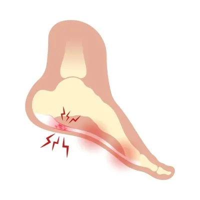 El dolor en el talón o en el arco del pie, especialmente después de estar de pie o caminar durante un tiempo prolongado, es un síntoma de inflamación aséptica de la fascia plantar.